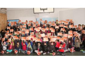 Lundi à l'école Jeanne d'Arc de Mende a a eu lieu la première remise de la dotation prévue dans le cadre de l'Opération Basket Ecole : ballons, diplômes et post...