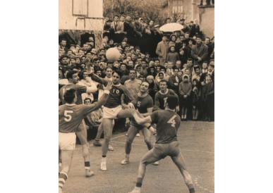 La Coupe de France de basket-ball se dispute depuis 1953...Instantané en quart de finale 1963 de cette édition dont la finale, déjà, se jouera au Stade Pierre de Coubertin.